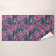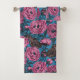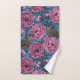 Peonies and wrens on blue bath towel set