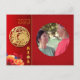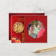 Design of Chinese peonies + golden Rabbit paper-cut (image printed) + Happy New Year in Chinese + customisable 2023 and small "happy New Year" onto a red background + decorated photo frame for your own photo in front. You can easily change photo by clicking the customise button. Design on horizontal holiday postcard. Matching square flat card and greeting card. Perfect for a family Chinese New Year of The Rabbit 2023.