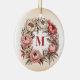 Peonies Floral Wreath with Personalised Monogram Ceramic Tree Decoration