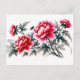 Peonies in Red Asian Ink Painting Holiday Postcard