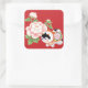 Peonies & Lion Dogs Japanese Kimono Pattern Square Sticker
