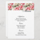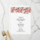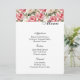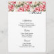 Menu card is shown with a art print of lovely pink and white peony flowers accented at the top of the card, shown on the basic white card paper.
