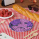 Peony and hydrangea in pink and violet paper plate