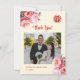 This Chinese wedding thank you card features a red double happiness symbol and watercolor peonies on a cream background. Matching wedding stationery available.