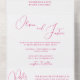 The Peony Elegance All in one wedding invitation features a bold and trendy hot pink-and-white palette with sophisticated peonies line art, creating a striking yet elegant design. The combination of these colours adds a sense of playfulness, joy, and tropical vibes, setting the stage for a celebration that is as memorable as it is vibrant. This invitation is perfect for couples who want to embrace the spirit of summer in a fun and lively way. Minimalist and refined, this invitation embodies chic sophistication with an artistic flair. Perfect for a modern, upscale celebration.