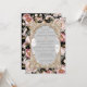 5" x 7" rectangle vertical design. Elegant enameled gold three dimensional looking filigree vintage frame over a pale pastel pink Peony floral with warm muted leaf foliage greenery and a rich charcoal black background with matching floral pattern on the reverse side. A complete set of products are available for purchase in the collection. MSP0101