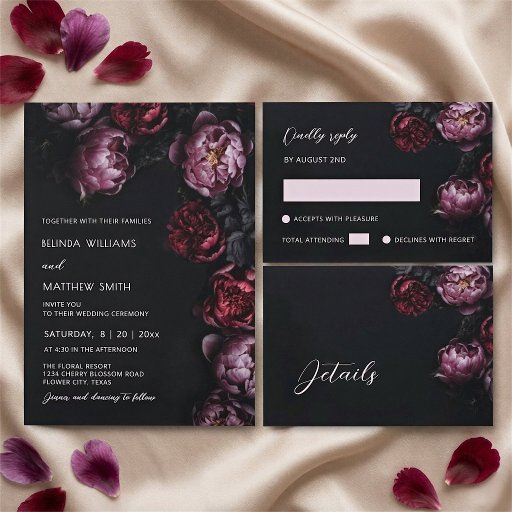 Red Purple 3D Flowers Dark Moody WeddingDesigned by Nina Baydur