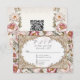 RSVP Response card with menu choices and QR code (or delete those fields if not needed). Luxe, elegant and romantic pale pink Peony floral with a Victorian style gold dimensional looking frame and warm muted leaf foliage greenery over a muted soft creamy ivory background. The reverse side has a square wreath and your QR code and website address. A complete set of products are available for purchase in the collection. MSP0101