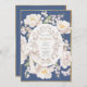 Peony Floral Vintage Elegant Blue Wedding Invitation