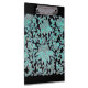 Pretty peony flower print in turquoise and black with a scrolly leaf design. Derived from an old vase pattern.