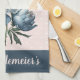 Peony Flowers in Blue & White on Pink & Blue Tea Towel