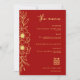 Peony Flowers Modern Chinese Red Gold Wedding Menu Invitation