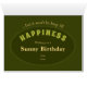Texts inside: But it won't be long till Happiness | Wishing you a Sunny Birthday. There are also two lines to add senders.
