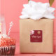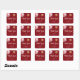 Chinese wedding thank you sticker with a gold double happiness symbol and pink peonies on a maroon red background.