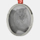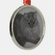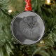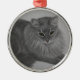Round, metal ornament with portrait drawing of my beloved cat of 18 years, Pepper.