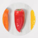 Peppers of different color placed on a gray cutting board