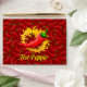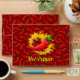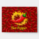 Red chilli pepper with circle of flame on removable seamless pattern background. Custom text.