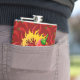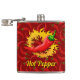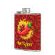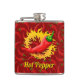 Red chilli pepper with circle of flame on removable seamless pattern background. Custom text.