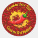 Red chilli pepper with circle of flame on seamless pattern. Custom text.
