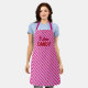 Apron in Diagonal candy cane stripes of deep fuchsia pink on a light peppermint pink background, with customisable text