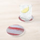 Cheerful red and white peppermint swirl coaster with a frosty look.