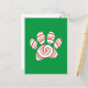 Custom postcards with peppermint swirl inspired shapes in red, green and white.