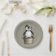 Peppy Penguin Paper Plates. With a twinkle in his eyes and a skip in his step, Peppy is ready to whisk you away on a whimsical journey through the frosty wonders of the Antarctic. Party Supplies for a Birthday Party, a Baby Shower or a any other Penguin themed Party.