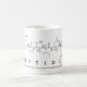 Peptides spelled out in amino acids as P E P T I D E S (Proline Glutamic acid Proline Threonine Isoleucine Aspartic acid Glutamic acid Serine) on a mug for the scientist in you.