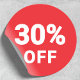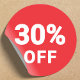 A simple typographic design with sample custom text "% off" in modern typography in white on a red background.