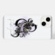 An abstract orchid flower photography iPhone case featuring the image "Perceptive Formation" by iPhone Style in shades of violet, black, and white in a decorative style.