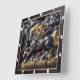 Percheron Horse Time: Gold Metal, Custom Art Storm Square Wall Clock