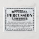 Official Percussion License. There are many activities involving various equipment, such as operating an automobile, aeroplane, etc., that require specialised training and licenses. Making music is something that usually requires training: lessons, practice, and rehearsals. Shouldn't it be required of the prospective musicians that they receive a license to operate the equipment, i.e., their musical instrument?