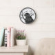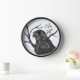 The size of the clock is dramatic and the abstract alcohol ink design is soothing and intricate at the same time. I chose the black frame that adds pop to the blue and gold design. The gold printing would be better in a slightly darker or larger font. I love it and I’m looking for just the right place in ny new apartment. I would recommend this clock for a personal gift or a present. I feel that the quality is excellent for the money! I’m a bit of a clock nut so I’m pretty particular about my purchases. The clock is larger in diameter than many if the clocks I have, so it stands out very well. I think a slightly darker printing color and a moderately larger size would best suit a professional decor or add more impact in a work place item.