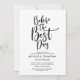 Planning a wedding Rehearsal Dinner celebration with the to-be Bride and to-be Groom, before their BIG day? Invite the guests with this "Before the Best day" Perfect Elegant Wedding Rehearsal Dinner Invitation Card. Add your rehearsal dinner details in matching black font / lettering.