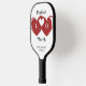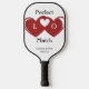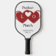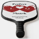 Monogram pickleball paddle with a nice wedding theme. A fun way to celebrate your wedding day. Customise the text on the paddle. You can add your desired name, monogram, initials, phrase, and date. Black and white colours with red hearts. Use the template to create your own monogram pickleball paddle.