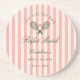 Celebrate love and style with this Perfect Match Tennis Bridal Shower coaster, designed with soft blush pink stripes and green accents. This elegant, modern design blends an old money, preppy aesthetic with a chic sports theme bridal shower, making it perfect for a tennis or country social club-inspired celebration. Featuring the playful phrase “she found her perfect match,” this striped barware is ideal for brides who love polished details, classic color palettes, and a timeless yet fresh look.