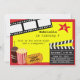 Start your celebration off with this adorable movie night invitation. It has all the elements of a great movie night. On the bottom there's a drink, popcorn, and a ticket. There's a black and white movie cue card where you fill in party info. There's a black and white film strip along the top. The background is yellow with a red border. Check out our many other designs and products in this line. © babystar