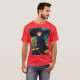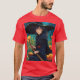 I give wanted to give this a 4 instead of a 5 because these Basic DARK T0shirts run unexpectedly SLIM or Narrow. Which is great if you do not have a potbelly, but I have a paunch. It isn't the shirt's fault that I've got a beer belly. The design and shirt itself is a quality cotton shirt. The color is more of a deep purple, but still a very pretty color. The Basic DARK T-shirts run a bit SLIMMER than the Basic Ts. The neck is a fraction narrower (or seems to be narrower) also. I'm a paunchy middle-aged woman and my neck is 12 inches (31cm) thick and the neckline fell about the same as in the photo of the man, and I had the desire to tug it a bit. So if you're a thick necked man or like loose shirts, be aware these are slimmer shirts. Once I get rid of my lockdown paunch it'll look great. The shirt washed well in cold water with no apparent bleeding. We don't have a dryer, so it hung dry. Did not shrink. Love the colors and the design. The design looks smaller on my shirt than it does on the model on-line. But still, it looks good on the shirt. The printing looks as it does on the model, just the size seems fractionally smaller. Washed garment in cold water, hung dry and design appeared unaffected.