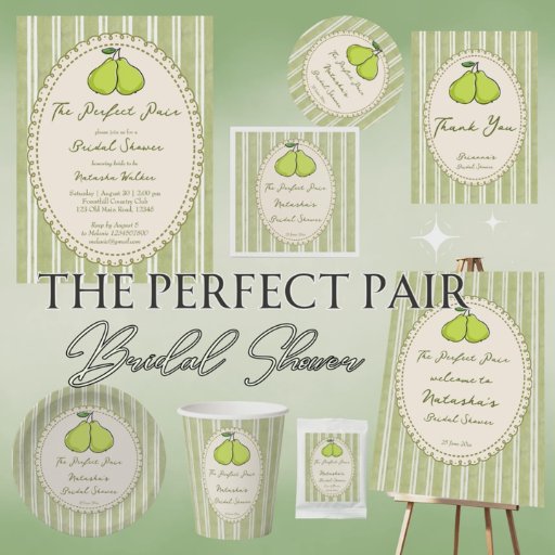The perfect pair pear Sage green stripes retro elegant bridal shower monogrammed paper plates, retro bridal shower personalized paper plates, fall bridal shower personalized table decor, earthy stripped bridal shower plates, pear bridal shower, yellow bridal shower paper plates, grand millennial bridal shower personalized party supplies printed paper plates, coquette bridal shower personalized custom paper plates the perfect pear bridal shower printed paper plates