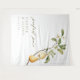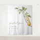 A fabric tapestry backdrop for the theme "perfect pear" featuring watercolor pears, blossom, leaves and branches. "perfect pair" is in green modern calligraphy font. Personalise with names and shower date.