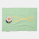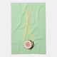 Japanese food, salmon sushi with chopsticks, fish and rice illustration.