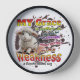 This clock exceeded my expectations for quality at a price that was surprisingly reasonable for a custom made product. The quality of the graphics on the face of the clock are excellent, including the customized personal name. The font color choice for the name turned out exactly as I had hoped for.