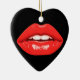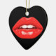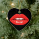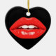 These red lips are on the front and on the back of a heart-shaped ceramic Valentine tree ornament.