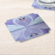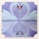 The painting depicts a misty, purple lake with two swans on it. The swans tilt their heads towards each other, arranging their necks in the shape of a heart. The graphic looks beautiful on paper coasters and wedding accessories.