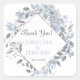 Share your happiness with your close friends and family and thank them for attending your bridal shower or wedding by attaching this pretty boho floral thank you sticker as an envelope seal or giving it as a wedding favour. This square wedding thank you sticker with flowers features a bouquet of pretty lavender blue blossoms with a diamond shaped frame where you can personalise with your names and the date of your event. Perfect for a bridal shower, wedding, or bachelorette party in the spring or summer.