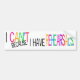 How many times did you have to tell someone that you can't meet for a social gathering because you've got rehearsals? Life in the theatre means you spend countless hours in rehearsals. Let everyone know with this bumper sticker. Gifts4Dancers.com