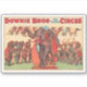 Vintage Downie Brothers circus poster showing performing elephants with women and trainer hanging by head from elephant's mouth.