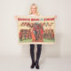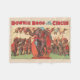 Vintage Downie Brothers circus poster showing performing elephants with women and trainer hanging by head from elephant's mouth.