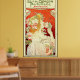 A vintage perfume ad depicting a redhead woman enjoying the fragrance of a flower. She wears an off-the-shoulder dress with flowers in her hair and art nouveau designs form the borders. From an original 19th century (1897) advertisement by Privat Livemont. All Rights Reserved © 2015 padre art