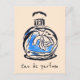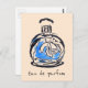A fashion illustration from an original artwork by artist Sacha Grossel of a blue perfume vintage perfume bottle. This watercolour illustration of a luxury brand perfume is in pop art style and the background colour is customisable. Perfume French quote of Eau de Parfum for a French fashion theme.